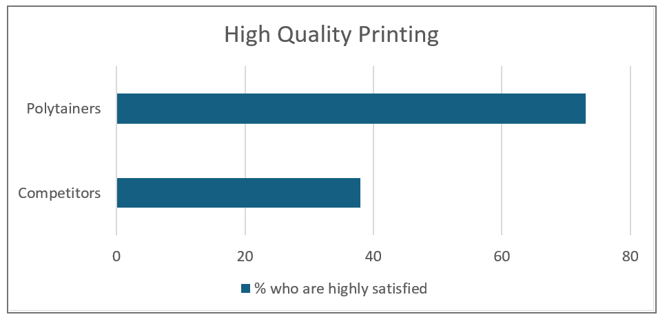 In a 2024 customer satisfaction survey, Polytainers’ print quality was rated well above the competition — a clear reflection of their expertise and dedication to delivering exceptional packaging.