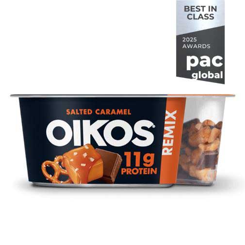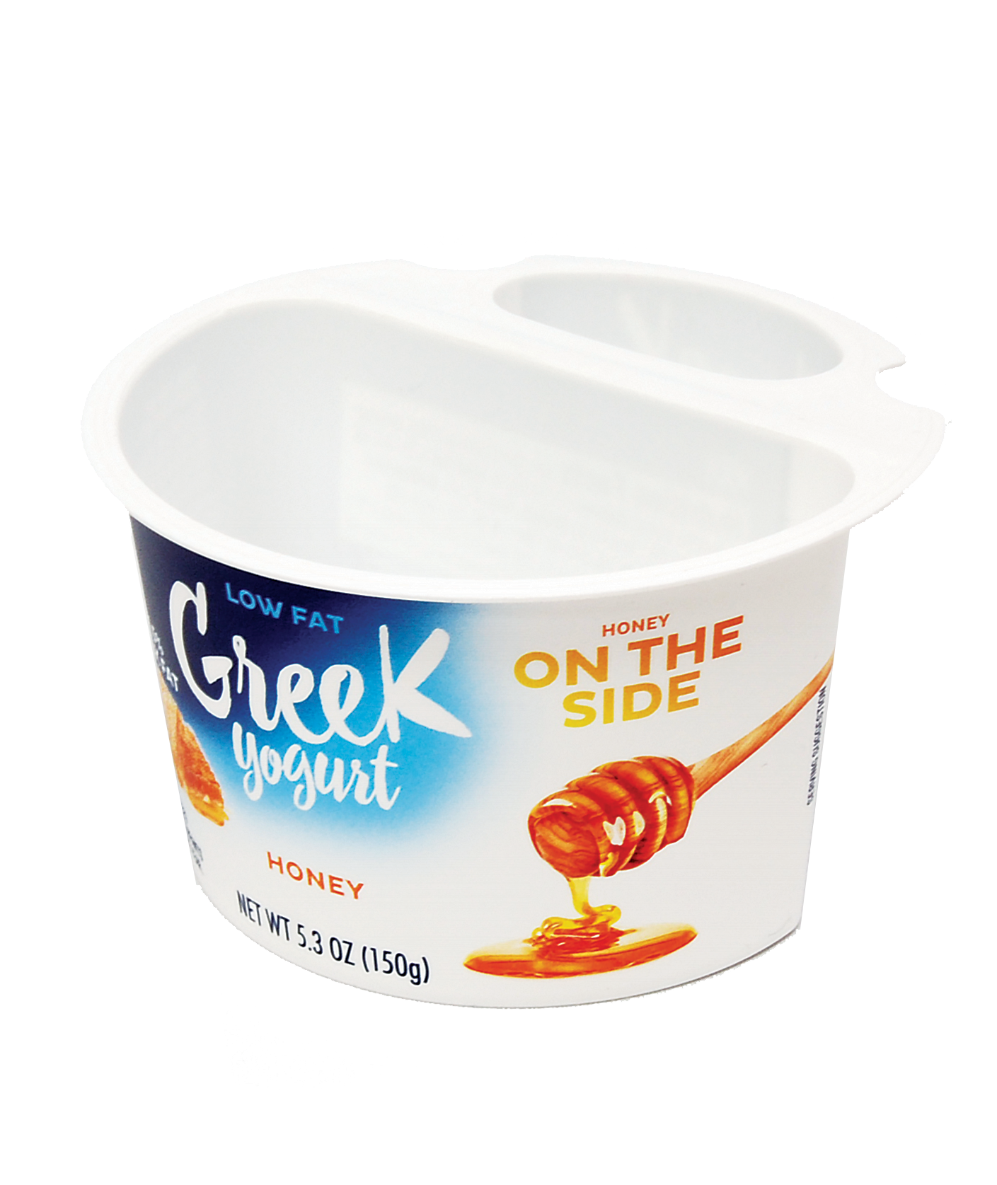 Our dual compartment Sidekick container offers efficiency on shelf while delivering tangible sustainability results. The Sidekick was Made2RecycleTM being designed with thinner walls which reduces the amount of plastic used during the manufacturing process. Both the container and IML label are made with polypropylene resin resulting in a 100% recyclable package; therefore the consumer does not need to separate materials before recycling.